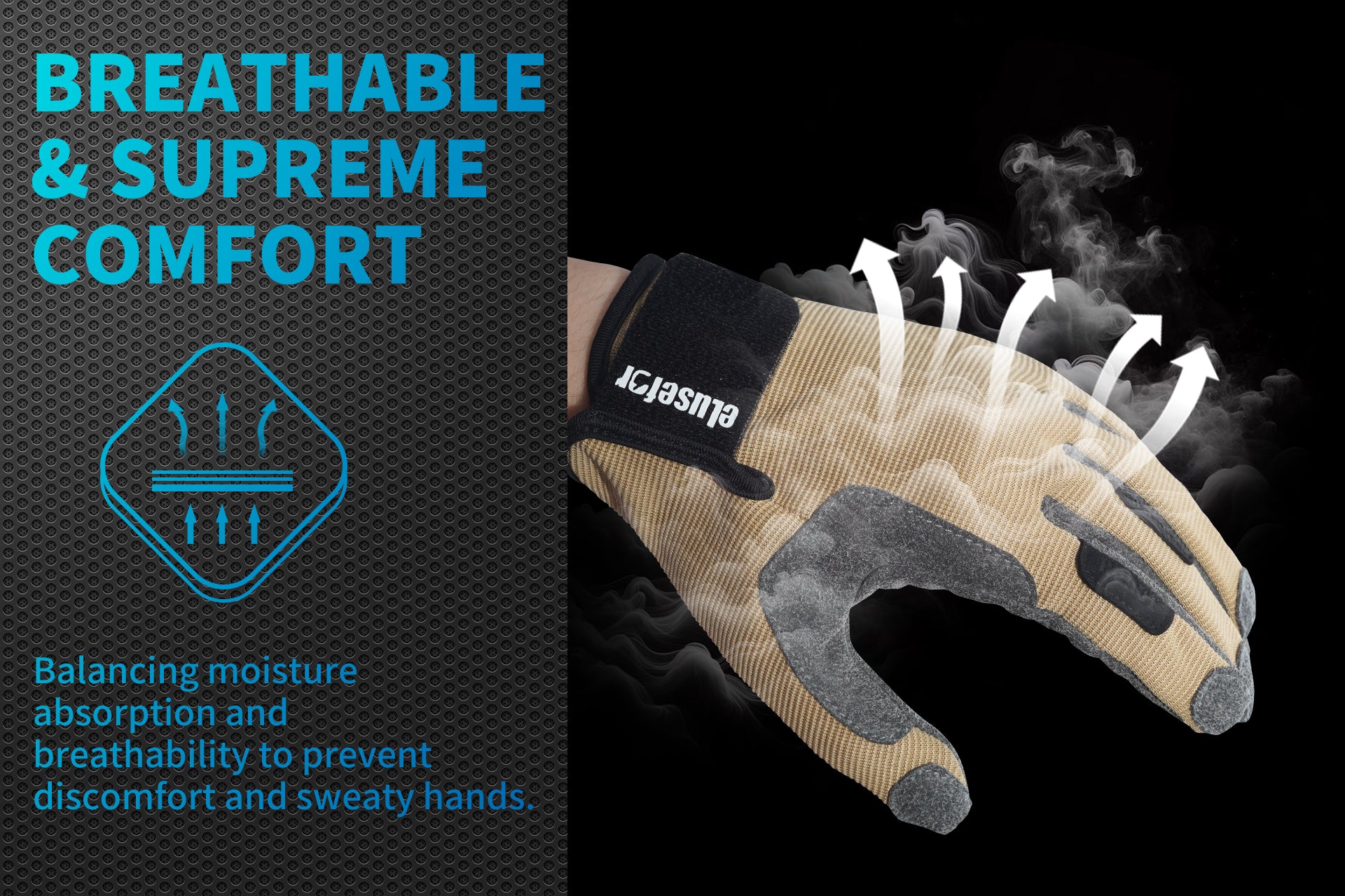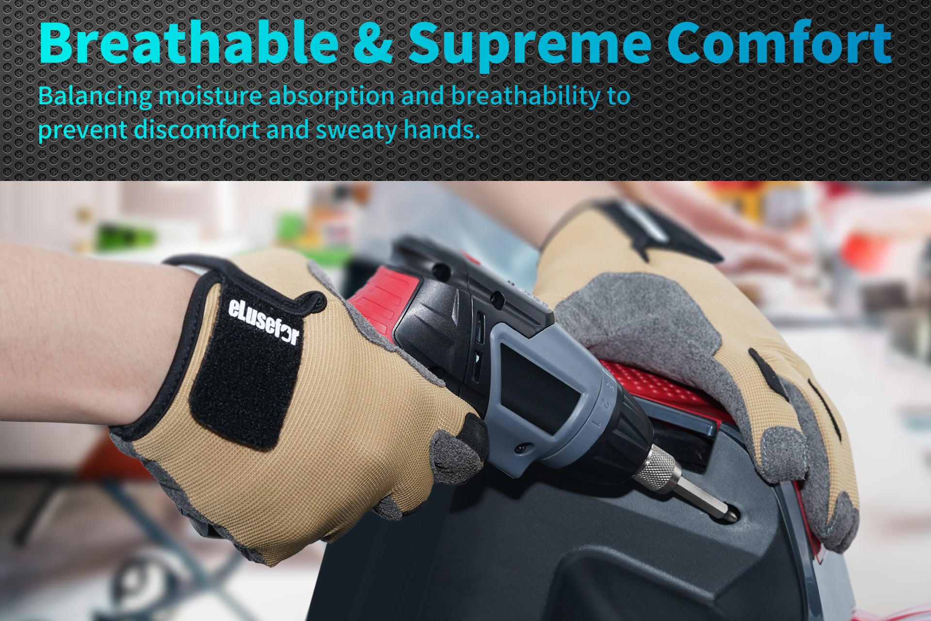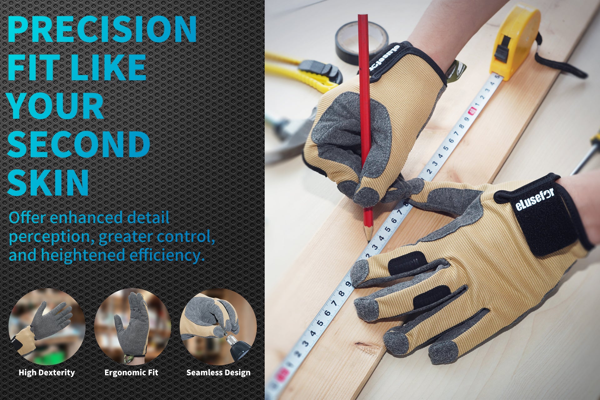 Experience unparalleled comfort with eLusefor ergonomic safety work gloves, specifically designed for precise, light-duty tasks. The anti-friction suede palm gives them a very firm grip. The wrist length is thoughtfully designed to not obstruct your watch, ensuring you can keep track of time or manage smartwatch notifications effortlessly, providing a perfect fit even for smaller hands.