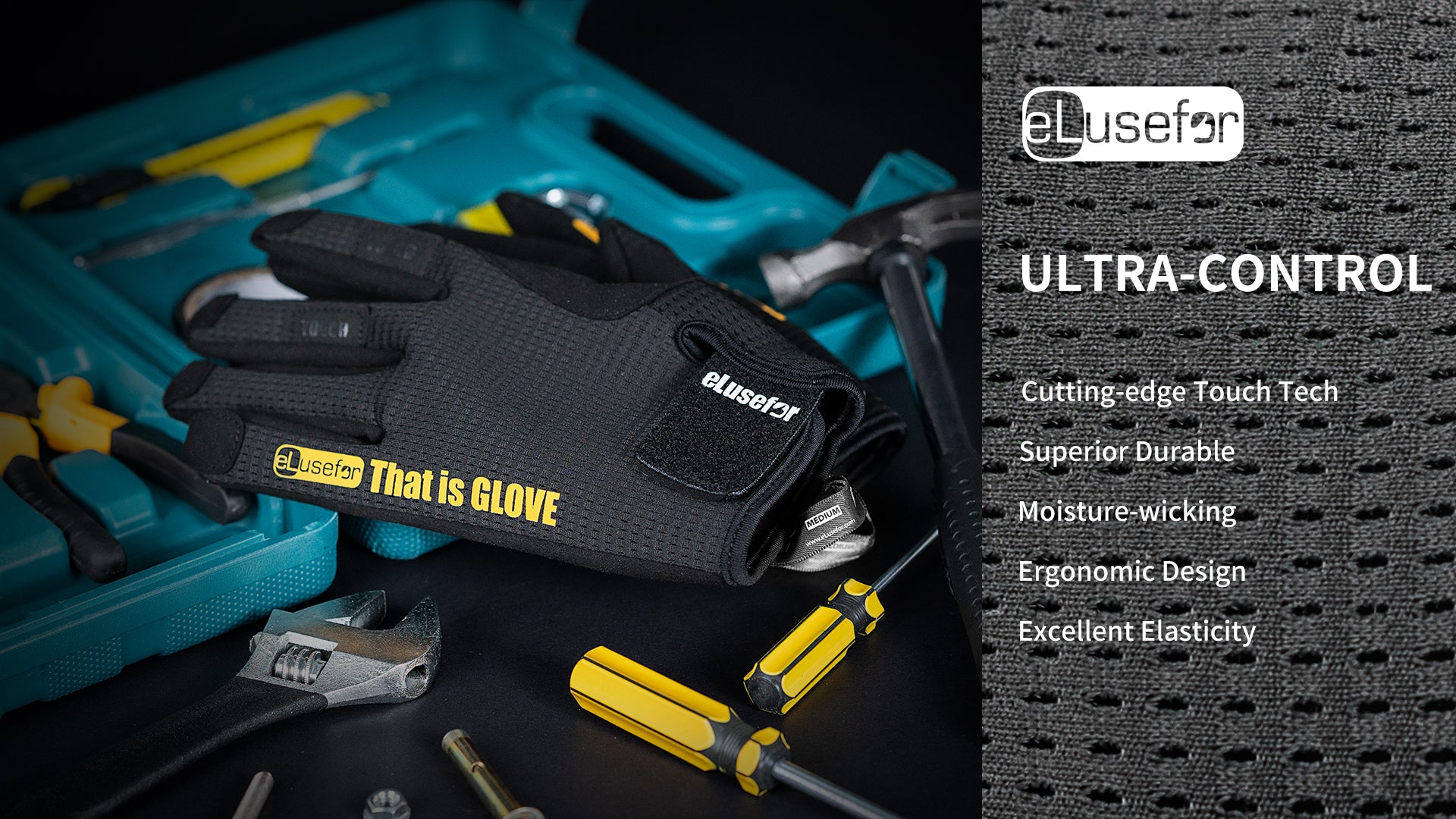 ControllerUltra Work Gloves - Ultra Durable, Stable Performance, 2Way Touch, BadgeFlex for Add-on Badges, Black