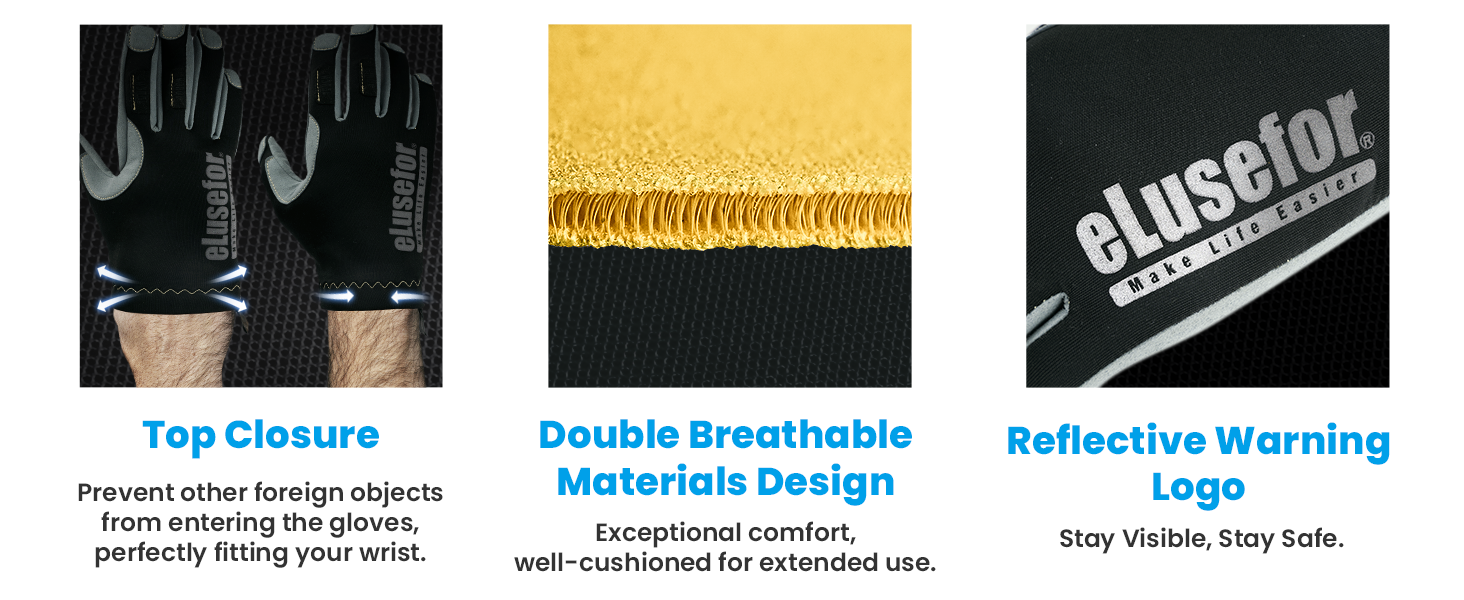 crafted with an intuitive design, ensuring a hassle-free, snug fit that requires no adjustments. The blend of premium materials and intelligent design culminates in gloves that are easy to slip on, yet provide a secure, comfortable grip, embodying the essence of ease and practicality.